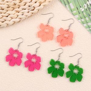 跨境新款时尚田园风耳钉亮色花朵亚克力耳环简约创意耳坠耳饰品女