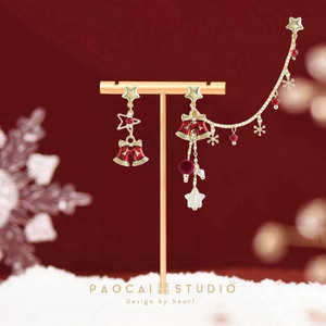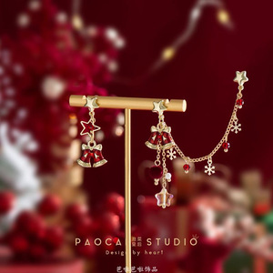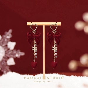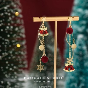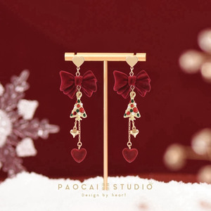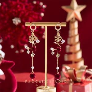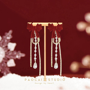秋冬新年红色耳饰一串植绒风铃花朵耳钉过年结婚流苏高级感耳环女