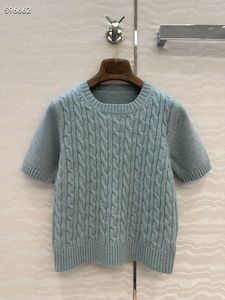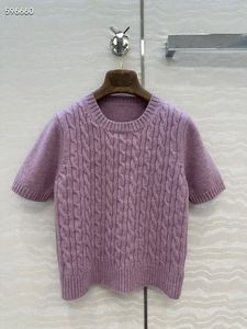 南油2025秋季新款 时尚优雅 简洁大气圆领短袖绞花羊毛上衣批发