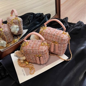 质感小包包女2025新款潮流时尚单肩斜挎包百搭手提毛呢链条盒子包