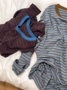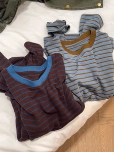 撞色条纹慵懒风针织衫女秋长袖上衣复古时尚宽松休闲柔软百搭设计