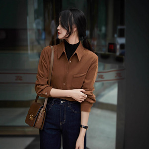 日韩现货2025年新款秋装职业通勤女士设计感灯芯绒长袖衬衫上衣