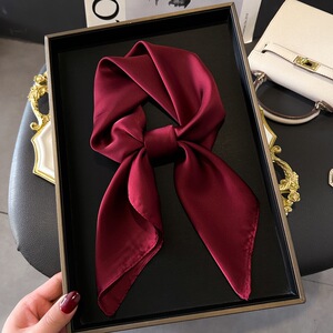 纯色70丝巾女新款高级感小方巾百搭仿真丝领巾薄款直播跨境批发