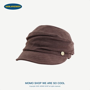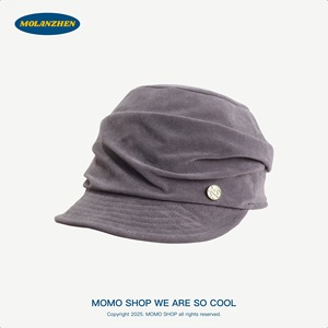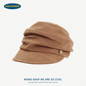 不挑人褶皱马术帽女生宽帽檐显脸小英伦风报童帽咖啡色麂皮画家帽