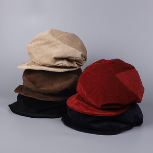 潮酷个性不规则鸭舌帽女士秋冬复古灯芯绒鸭舌帽文艺百搭帽子