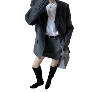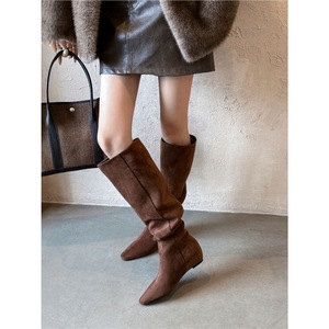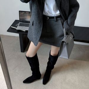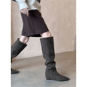 腿精出街欧美方头磨砂内增高褶皱堆堆靴秋冬新款小个子不过膝长靴