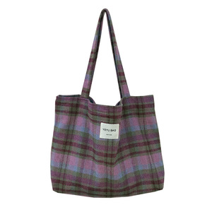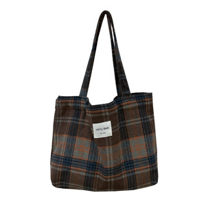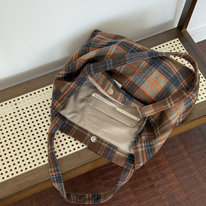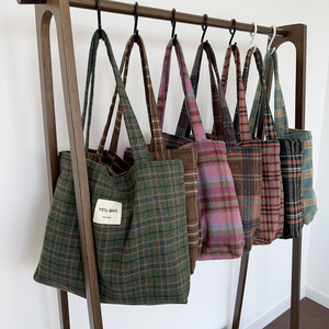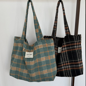 秋季新款韩国格子单肩手提包手拎包大容量收纳包包百搭购物包女包