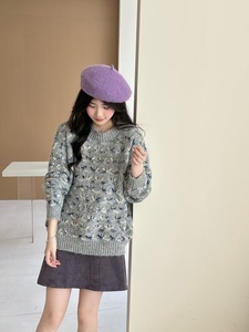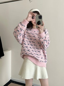 复古提花套头毛衣女2025秋冬新款韩系小众宽松休闲套头针织衫上衣