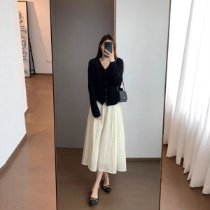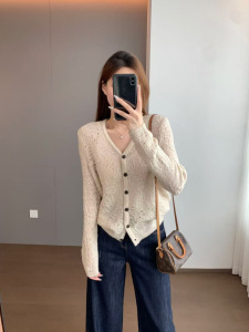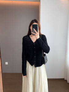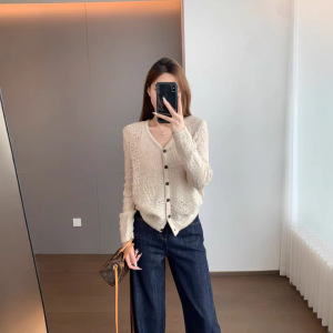 简约老钱 绵羊毛桑蚕丝混纺轻薄蓬松软糯软糯线条针织开衫G091406