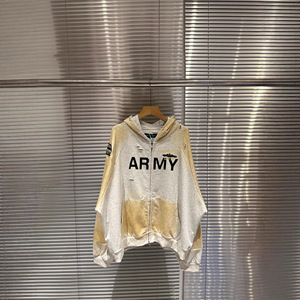 Project G/R 25ss重磅水洗拼接做旧脏染拉链帽衫卫衣外套
