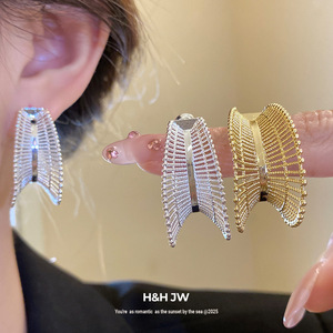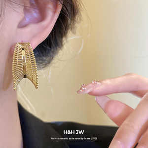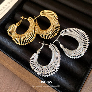 18k真金电镀银针镂空圆形耳圈欧美个性气质耳环轻奢高级感耳饰女