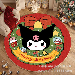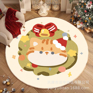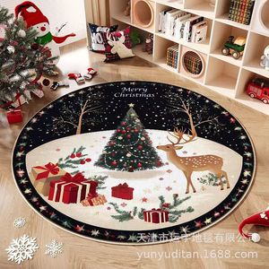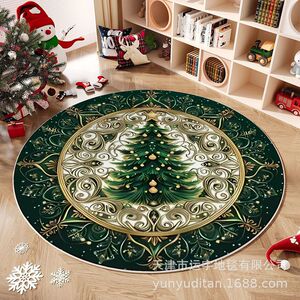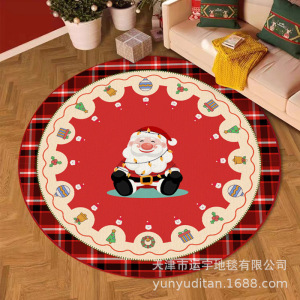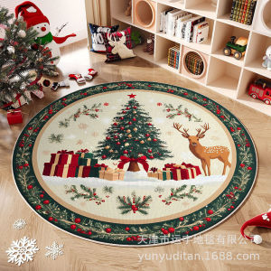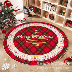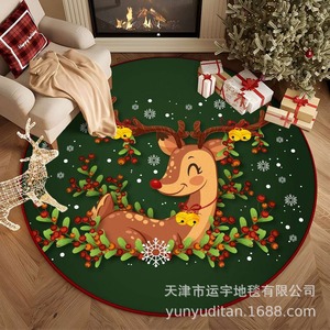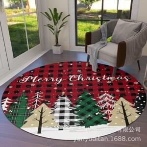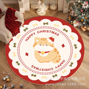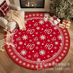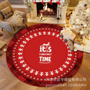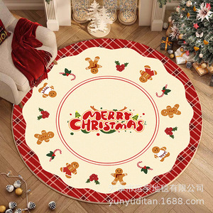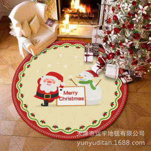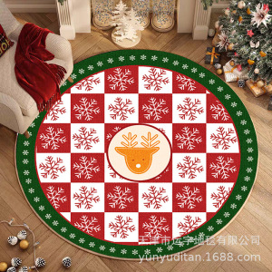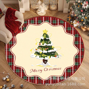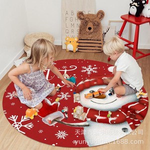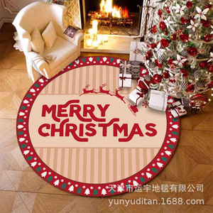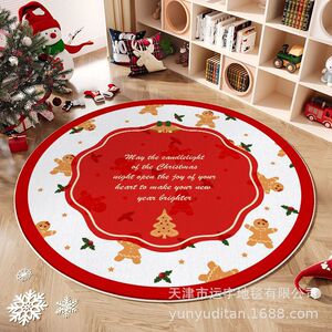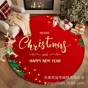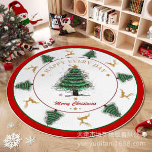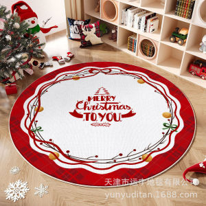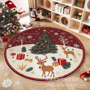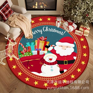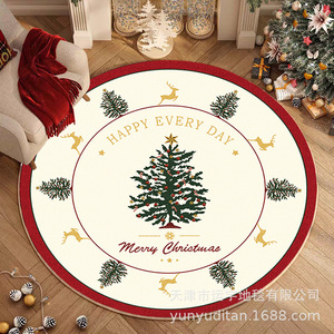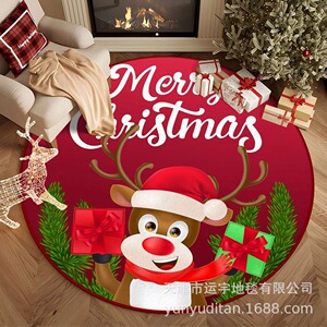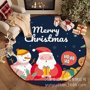 跨境圣诞节地毯圆形客厅地垫圣诞装饰氛围垫子圣诞树地垫贴标代发