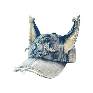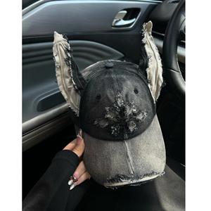 美式复古杜宾耳朵牛仔棒球帽子男女春秋季新款显脸小十字架鸭舌帽