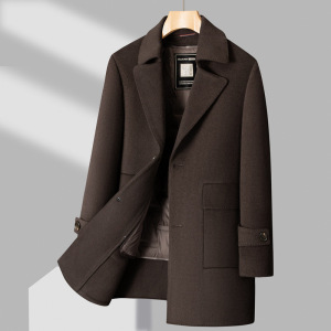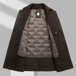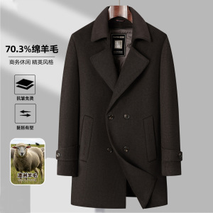 男式大衣2025秋冬中长款双排扣脱卸羽绒内胆青年商务羊毛保暖外套