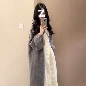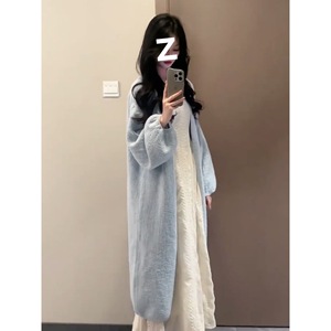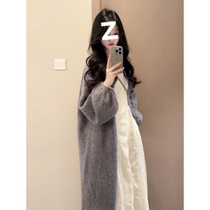 2025新款韩系中长款针织毛衣开衫外套女早秋季慵懒风宽松外搭大衣