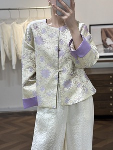 新中式国风真丝混纺金线提花外套2025秋季新款复古桑蚕丝长袖上衣