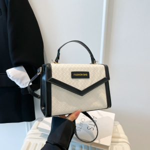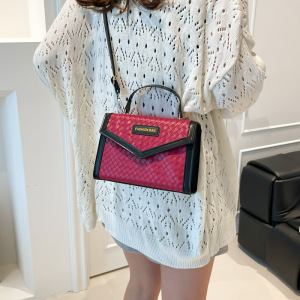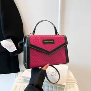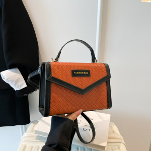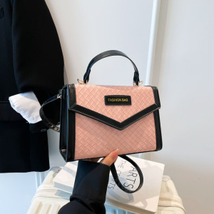 潮流草编织纹小众单肩包女士2025新款斜挎包休闲个性撞色手提小方