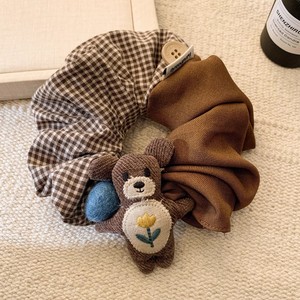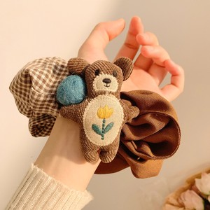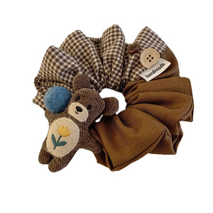 可爱咖色格子花朵小熊大肠发圈女慵懒风扎头发超大号百搭发饰头绳