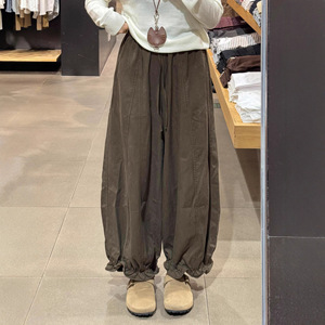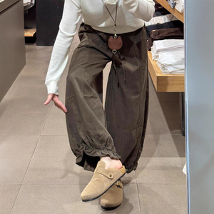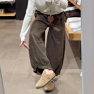 咖色九分花苞休闲裤女秋季大码胖mm宽松显瘦小个子垂感阔腿气球裤