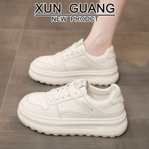 踩屎感真皮小白鞋女鞋2025秋季新款厚底百搭轻便运动休闲学生板鞋