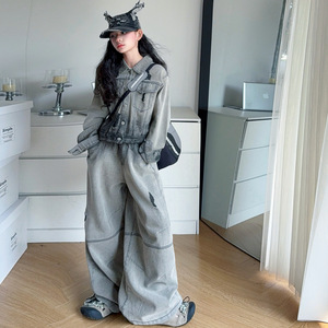 男女童牛仔套装2025年新款中大童秋装渐变外套阔腿裤港风两件套