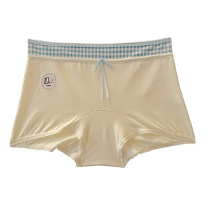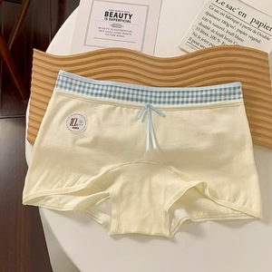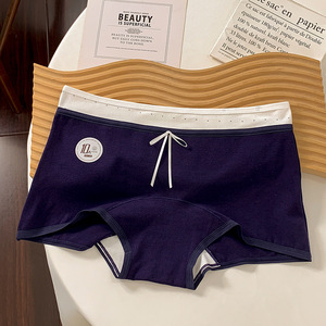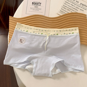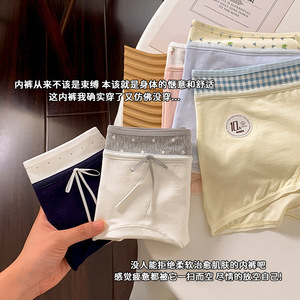 女生甜美大码纯棉内裤女平角裤加长纯棉裆10A抗菌拼色学院风内裤