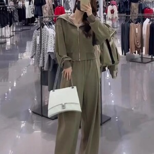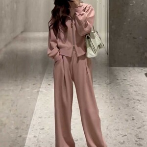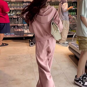 2025新款粉色韩风chic秋季套装女装显瘦宽松连帽时尚运动休闲服