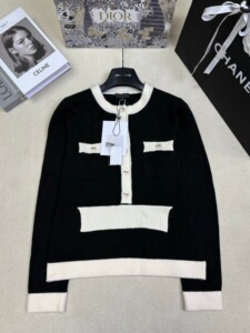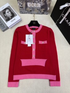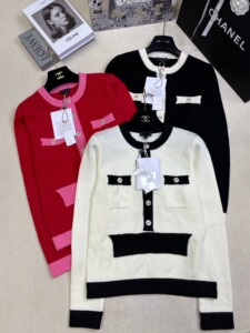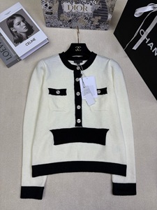 小香风圆领男女羊绒混纺针织衫南油撞色显瘦开衫外套