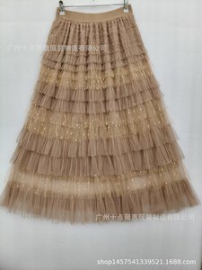 跨境气质亮丝波点蛋糕裙2025秋季新款时尚甜美纱裙长款女半身裙