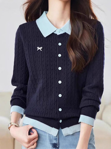 欧货高端舒适假两件长袖针织衫流行时尚打底衫2025秋季上衣女