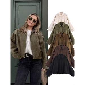 亚马逊春季新品欧美跨境女装绒面质感翻领飞行员夹克外套