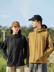 软壳衣男秋冬加大码户外冲锋衣运动休闲开衫外套防风防水连帽夹克