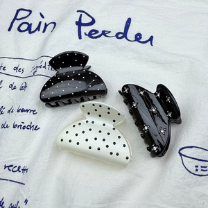 法式黑白波点小号发夹后脑勺发抓女新款高级感抓夹气质鲨鱼夹发饰