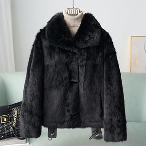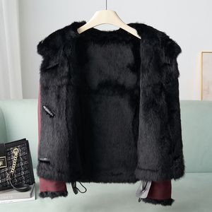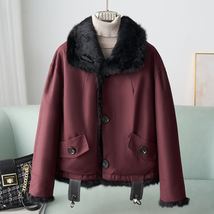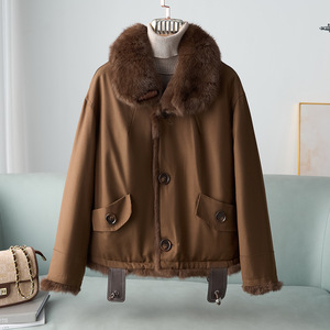 厂家现货2025秋冬新款韩版休闲兔毛内胆双面穿尼克服皮草上衣女