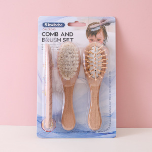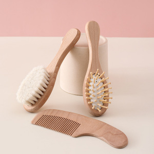 婴儿护理榉木梳刷三件套 榉木梳子刷子 宝宝气垫梳柔软羊毛刷