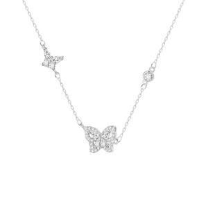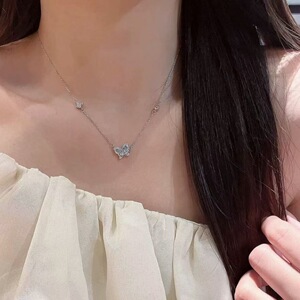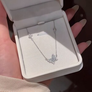 银贝S925纯银爆闪满钻蝴蝶锁骨链时尚百搭高级颈链闪O链闺蜜礼物