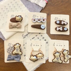 咖色可爱小熊发夹宝宝韩系学院风发卡女童边夹头饰发圈皮筋