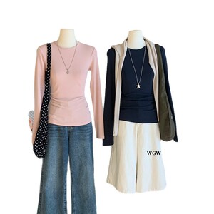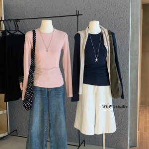 WGWE7398圆领正肩长袖t恤修身针织内搭打底衫休闲上衣