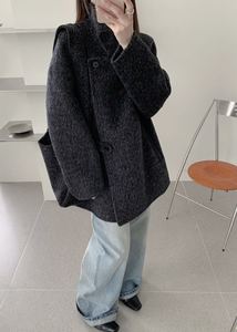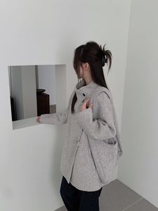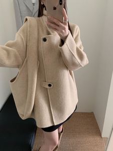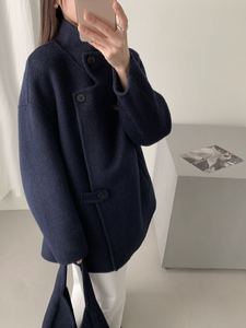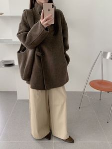 送包包韩版宽松立领双面羊毛大衣中长款加厚简约保暖秋冬羊绒外套