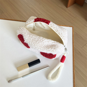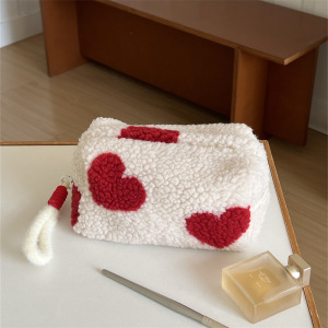爱心毛绒笔袋化妆包大容量高颜值旅行好物收纳包便携可爱洗漱包