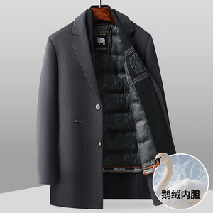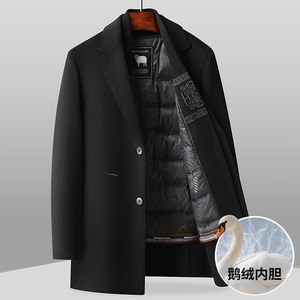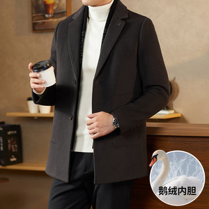 男式大衣2025秋冬围巾领脱卸鹅绒内胆青年商务手工羊毛呢风衣外套