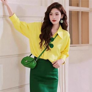 深圳南油高档货时髦秋装穿搭一整套小众气质小香风轻奢高级感黄色