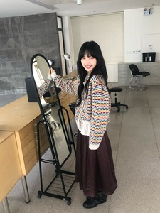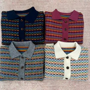 韩系复古彩虹翻领针织开衫女秋冬新款宽松显瘦百搭软糯毛衣外套潮