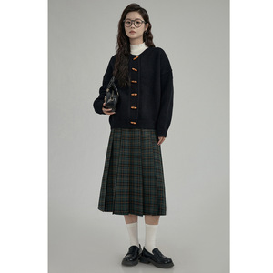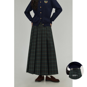 「HUIXI」学院风格子半身裙女2025年冬季款高腰显瘦百褶a字长裙子