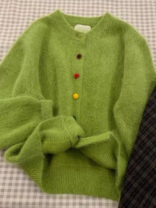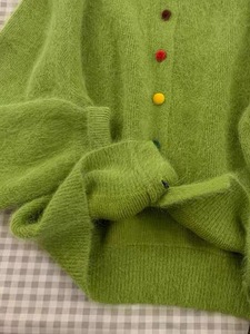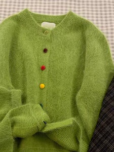 欧洲站2025冬季新款女装绿色彩色纽扣毛衣感穿搭上衣欧货