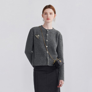 实拍绵羊毛山羊绒针织衫开衫秋冬爱心切割水钻高智灰色轻暖毛衣