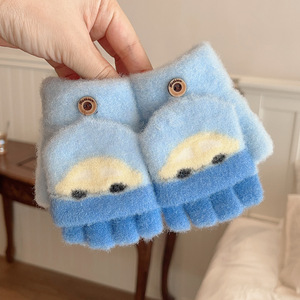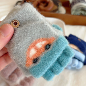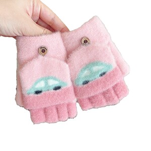 新款提花小汽车宝宝手套秋冬季保暖加厚男女小孩通用半指翻盖五指