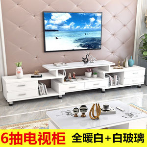 6抽柜+1.3米茶几(全暖白+白玻