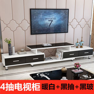 4抽电视柜 暖白+黑抽+黑玻璃