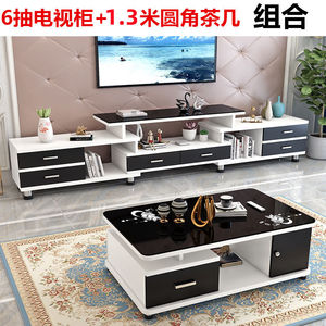 6抽柜+1.3米茶几(暖+黑+黑玻